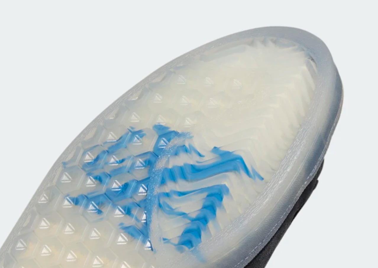 Outsole Bottom의 특징중 하나는 클리어 러버를 사용한것이며, 견고한 아디터프 토와 바운스 미드솔, 그립감이 뛰어난 지오플렉스 아웃솔, 아디프린 쿠셔닝이 장착되어 있습니다. 그리고 검은색 스웨이드 갑피의 푸른색 액센트와 반투명 갑피의 Maxallure 로고가 대담한 마무리를 더해줍니다.